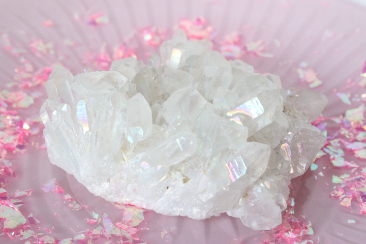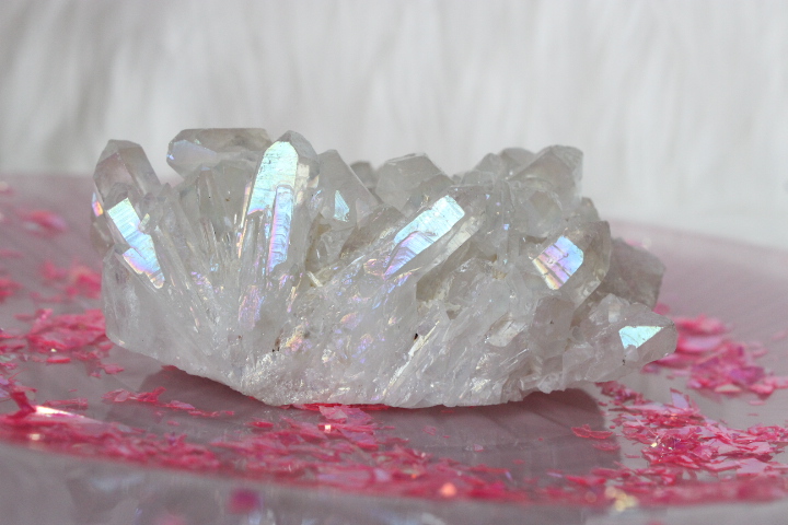 Angel Aura is used in meditation and can help one meditate on finding the proper course of action in life. It is said to help with angelic communication and communicating with Higher Self and inner wisdom. It is used by mystics to help access Akashic records and past life recall. It is said to bring peace and tranquility because of the angelic protection it brings.